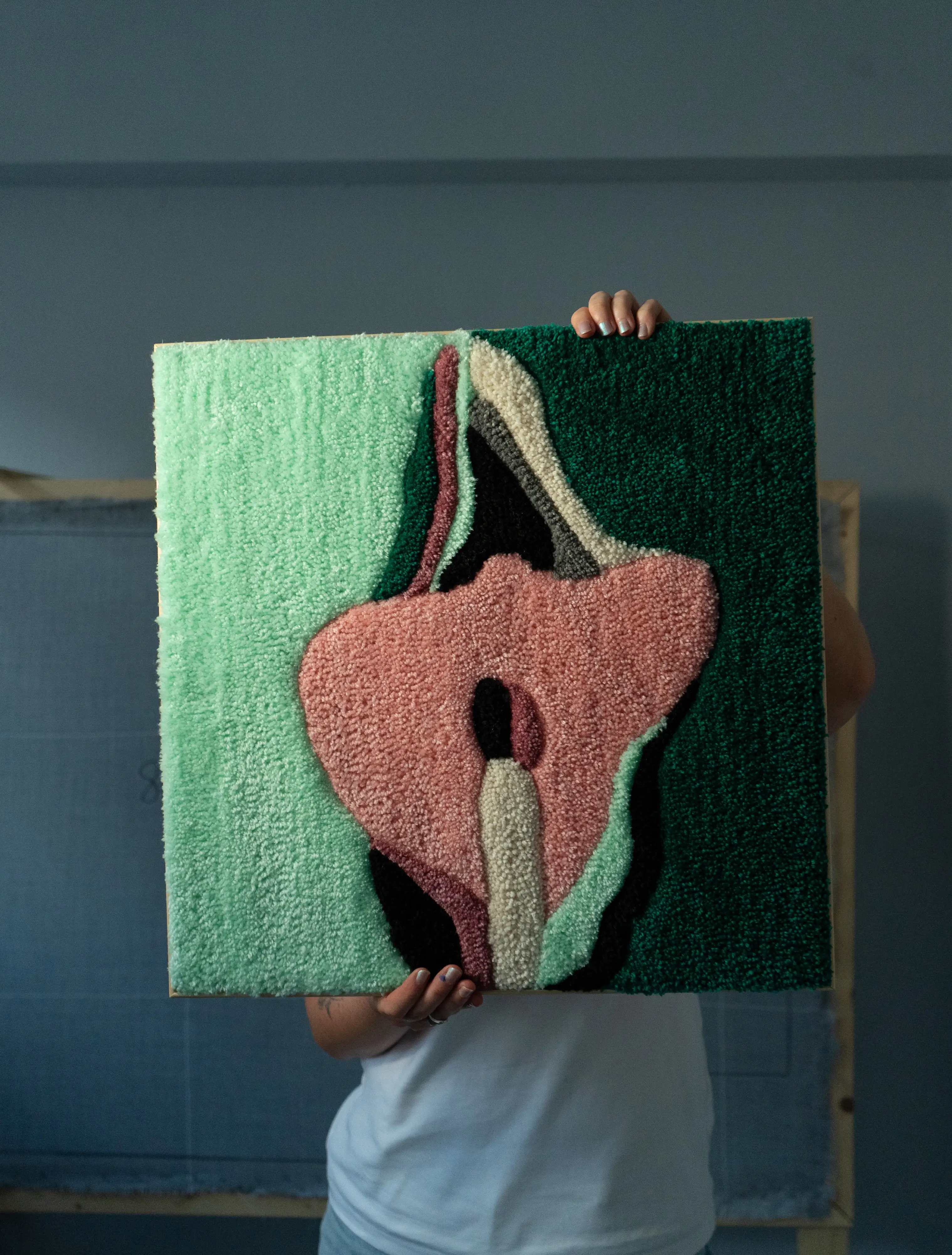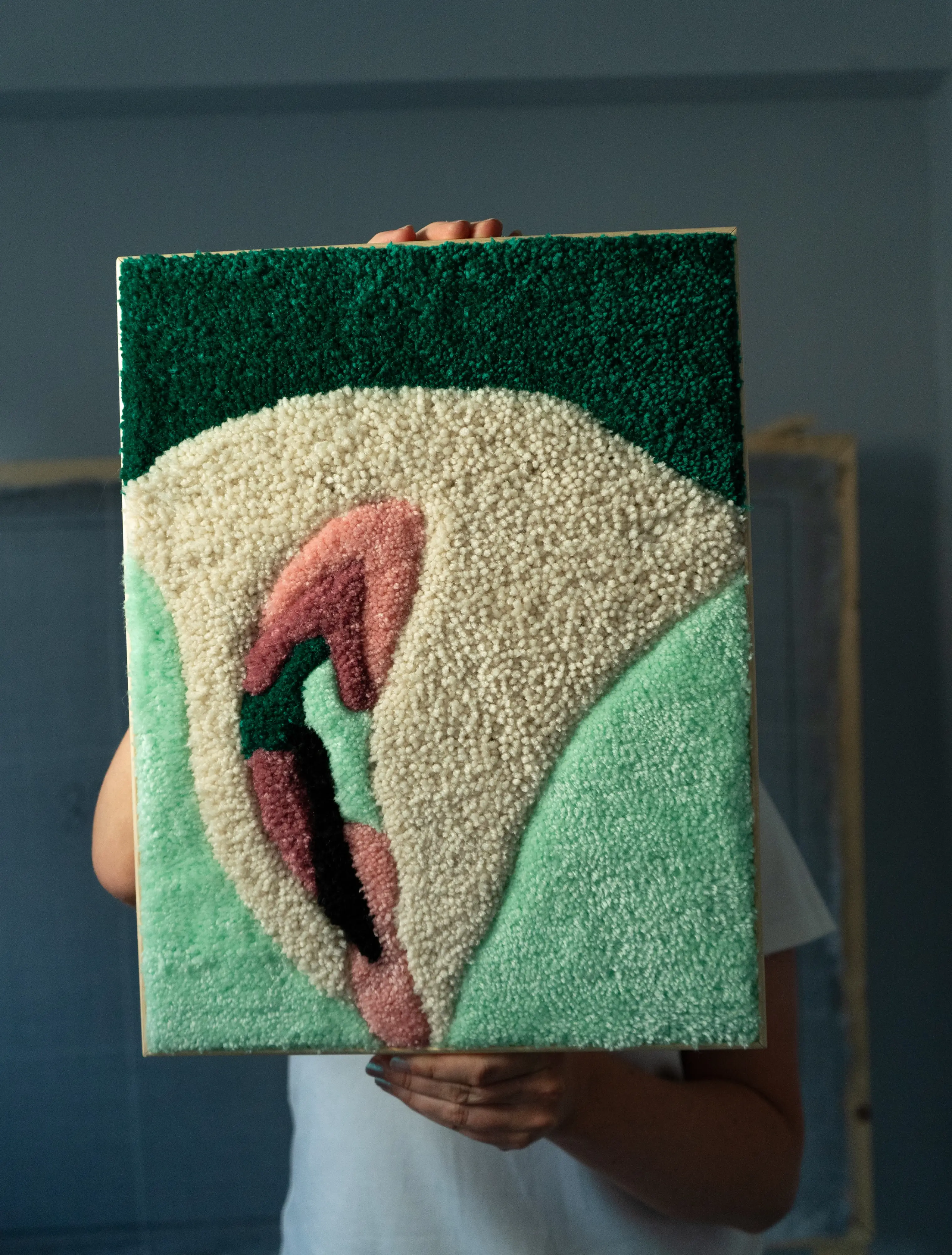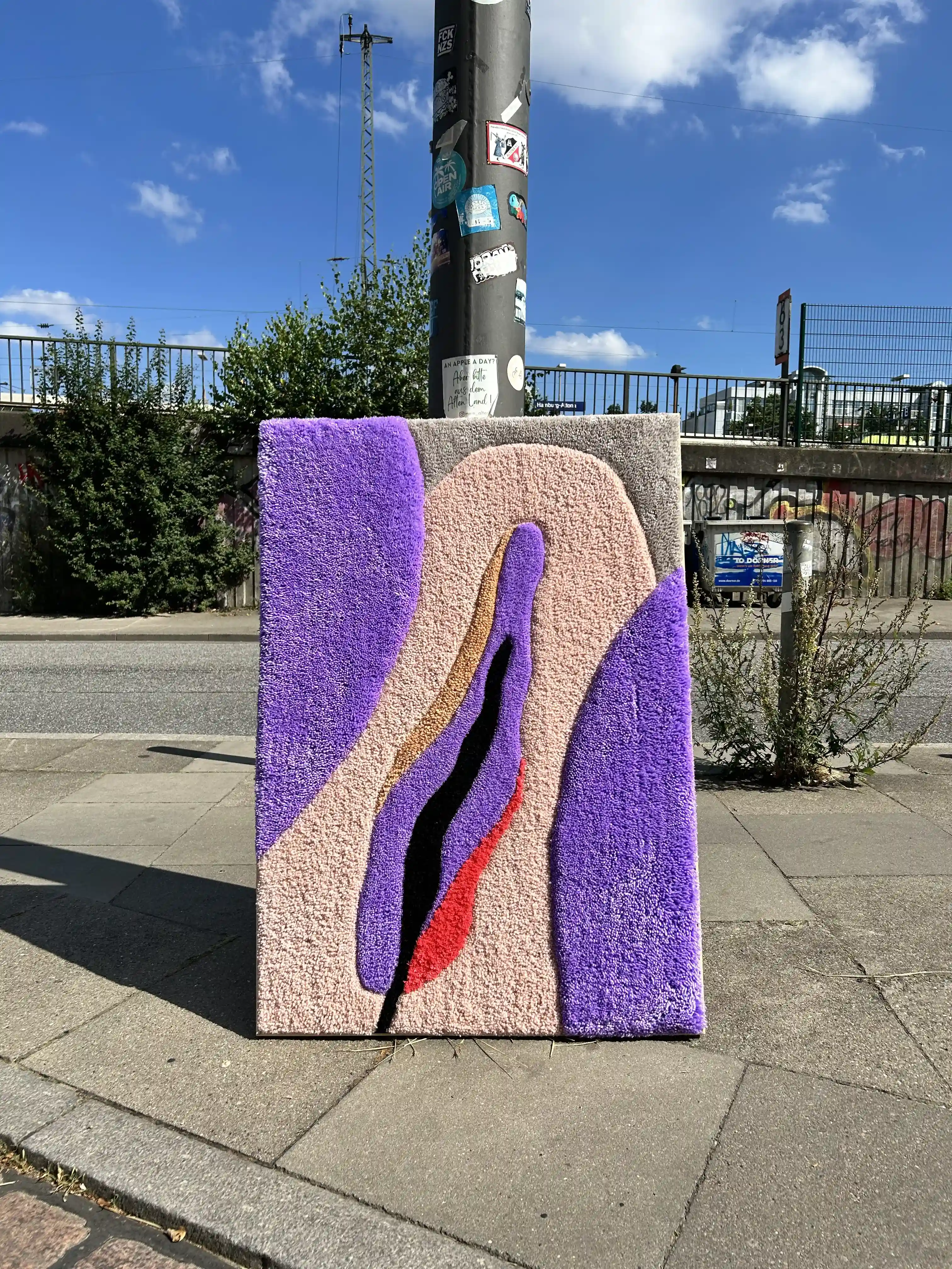 Tufted rug made of a mix of acrylic, cotton and wool. This was a commission. It is a personal portrait of a vulva.
